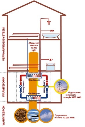 Een warmtepomp kan veel meer energie afgeven dan ze gebruikt, bron: ODE