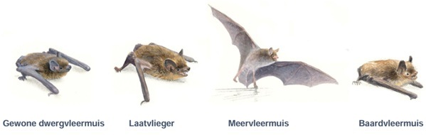 Vleermuizen die in spouwen kunnen zitten, bron: Elwin van der Kolk