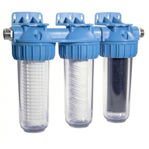 Wil je toch heel graag een groendak aanleggen op een dak dat je al gebruikt om regenwater op te vangen, dan moet je er alvast rekening mee houden dat je minder regenwater zal kunnen gebruiken dan voordien. Om te vermijden dat het water een kleurtje krijgt, raden we een triofilter aan die het water zuivert dat uit de tank komt. Deze filter zuivert in de eerste twee delen de grove en fijne deeltjes, de laatste stap met actieve koolfiltering haalt er de rest van het organisch materiaal uit.
