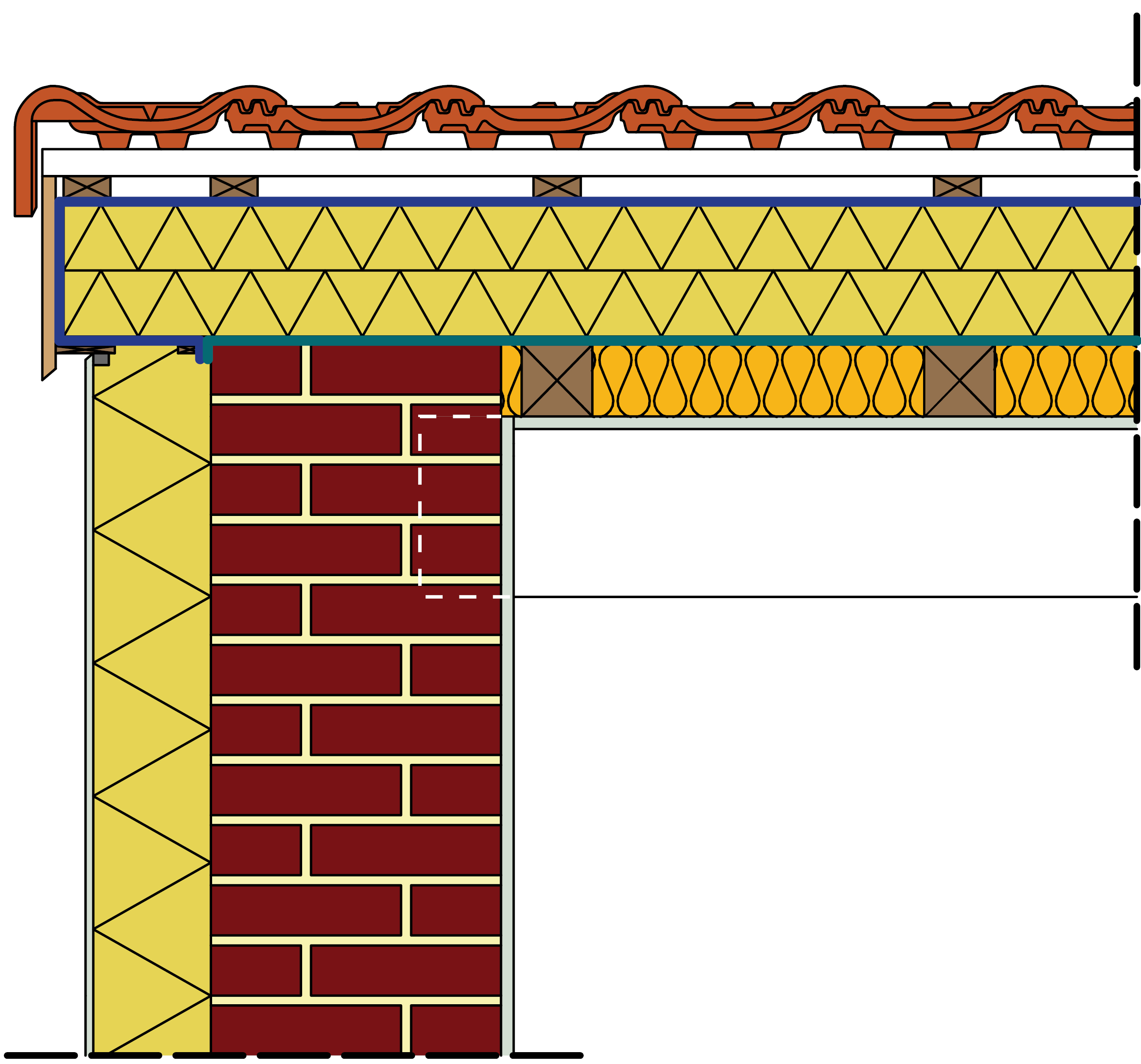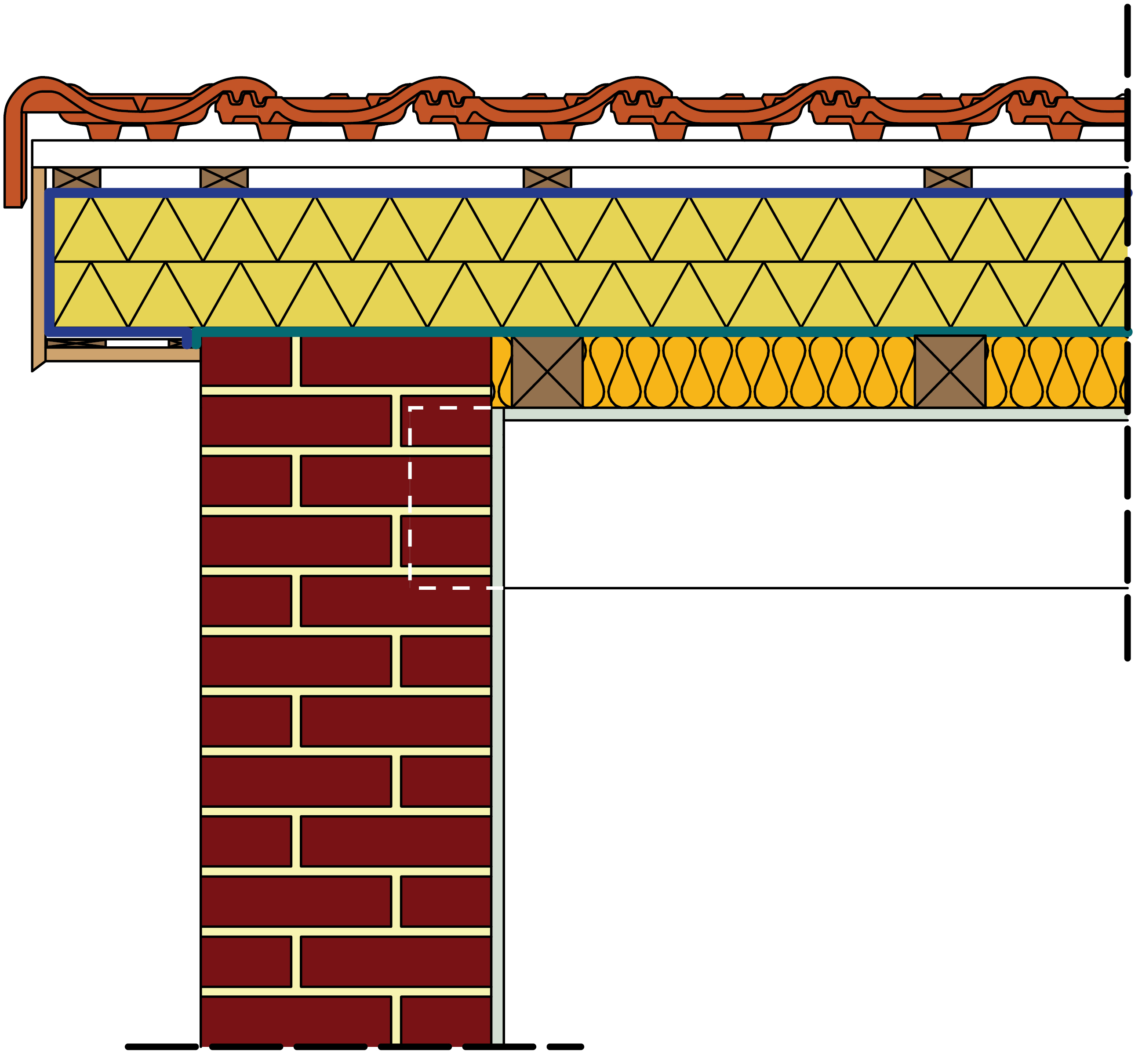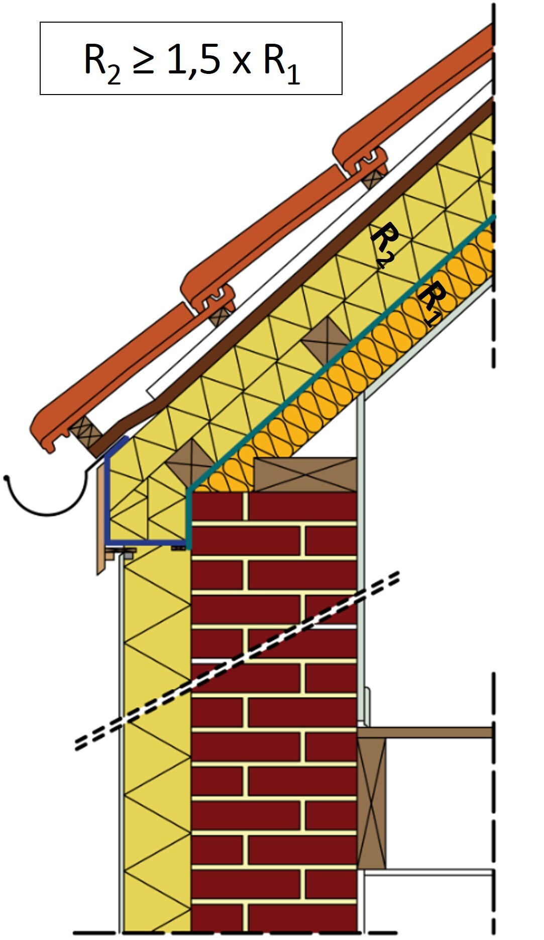 Bestaande isolatie onder het nieuwe dampscherm mag behouden blijven op voorwaarde dat de R-waarde van de nieuwe sarkingdakisolatie minstens anderhalve keer groter is dan die van de bestaande isolatie tussen de dakstructuur