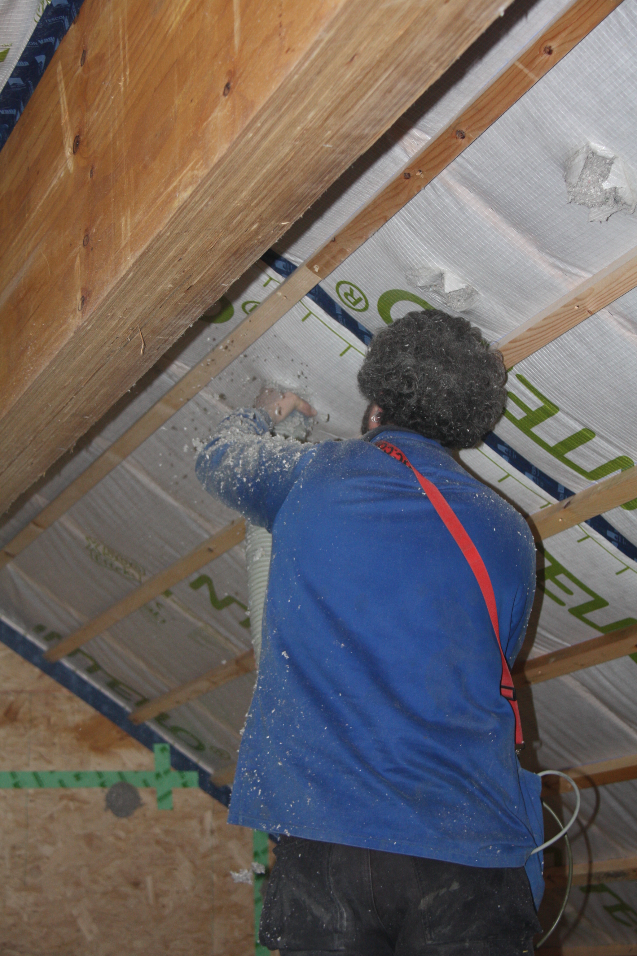 (isolatie bovenop de dakstructuur). Dit is werk voor professionals.